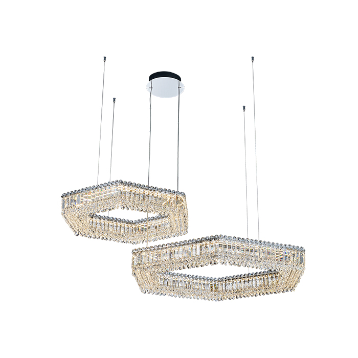 Enrich your interiors with this fabulous dual hexagon crystal chandelier. The arrangement of crystal and concealment of the luminaries creates a dramatic lighting decor for upscale spaces.